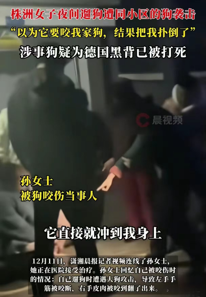 那天是12月9日晚,地点在株洲荷塘区一个叫阳光家园的小区。53岁的孙阿姨像往常一样,特意挑了晚上10点左右人少的时候,牵着自家拉布拉多下楼走走。她平时就很小心,知道自家狗个头不小,从不赶高峰期遛弯,避免麻烦。谁知,刚走出没多久,对面突然冒出一条没拴绳的德国黑背!孙阿姨一眼就认出这是猛犬,心里咯噔一下,想赶紧避开。可惜晚了,那狗直接盯上她,猛扑过来。